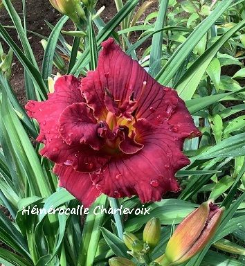 Épatante grande fleur rose foncé, coeur et bordure rouge foncé, fine bordure des pétales blanche, coeur vert. Florifère et fertile. |