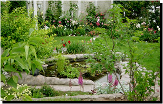 de la cascade et par la danse des poissons qui sautent dans l'étang